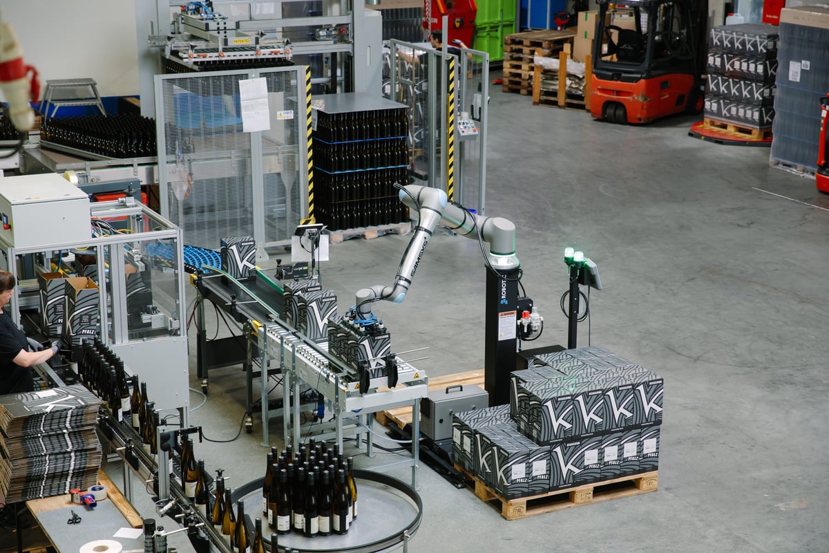 Erfahren Sie, wie dieser Weinhersteller die Herausforderungen der manuellen Palettierung mit einer 3-tägigen Implementierung und einer Cobot-Lösung mit einer Amortisation von 14 Monaten gemeistert hat